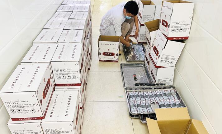 調劑室的藥師們負責審核、調劑、復核處方;煎煮車間按操作規程進行:泡、煮、打包的工序;成品庫統一收集成品,待冷卻后貼標、封裝、制單;配送人員星夜兼程,馬不停蹄地將中藥防感湯第一時間送往海口市二十六個隔離點供三千余人服用,并向各市縣中醫院配送共計約一萬余付。各個工序忙而不亂,忙而有序。壽南山將士們在非常時期,表現出了可貴的責任擔當,大家心連心、肩并肩,主動參與、積極配合、鼎力支持疫情防控工作,共同筑起了堅不可摧的阻擊防線。